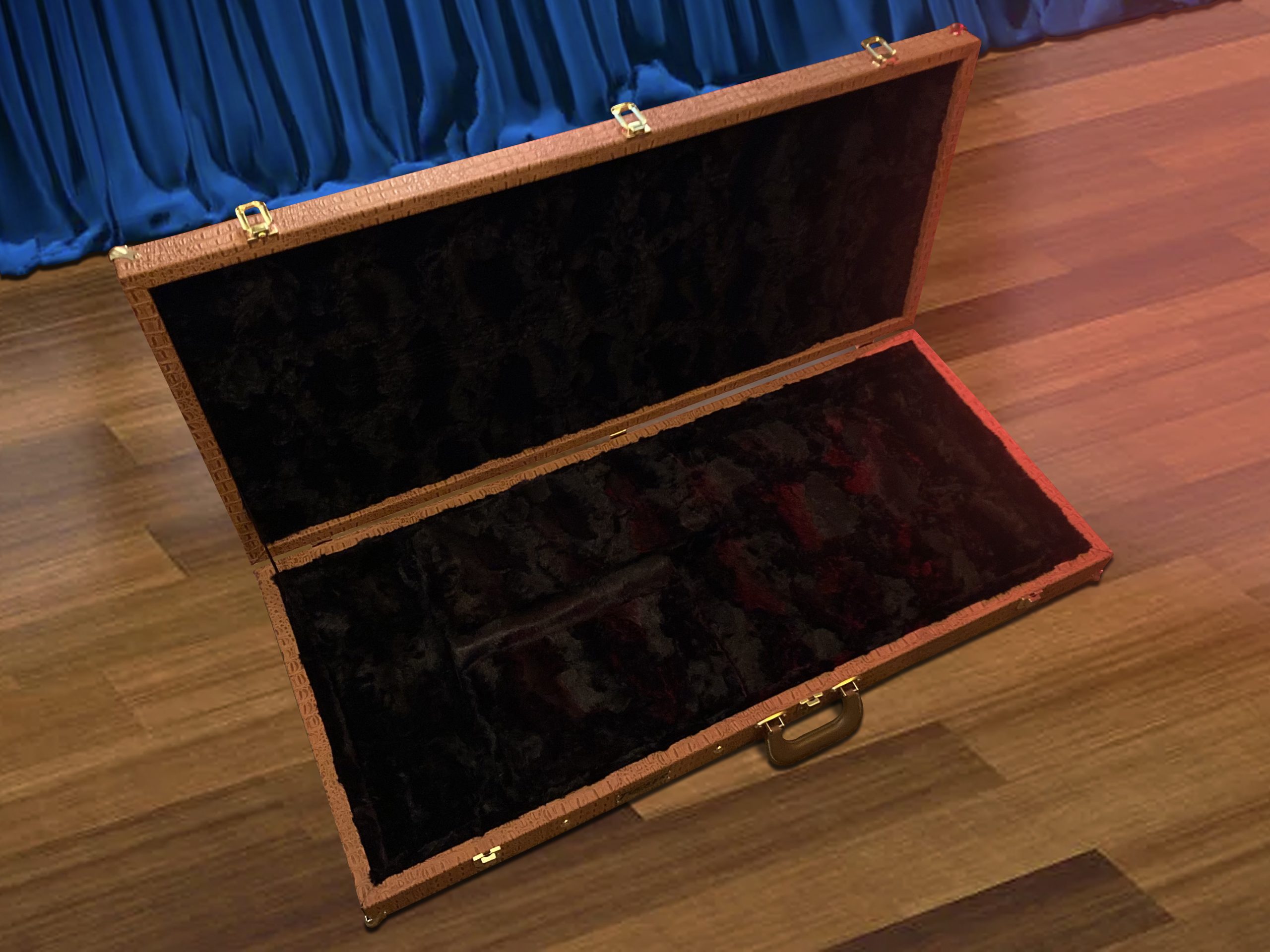 Tucker Custom Cases are uniquely designed to house and protect your prized guitar. All wood construction with quality hardware and your choice of interior plush fabrics. Custom storage areas can be designed for your special needs if desired. Many outside coverings are offered such as faux crocodile or snake skin, vinyl or classic Tolex in a variety of textures and colors. The cases can also be made from quality soft or hard woods with natural or stained finishes as well.